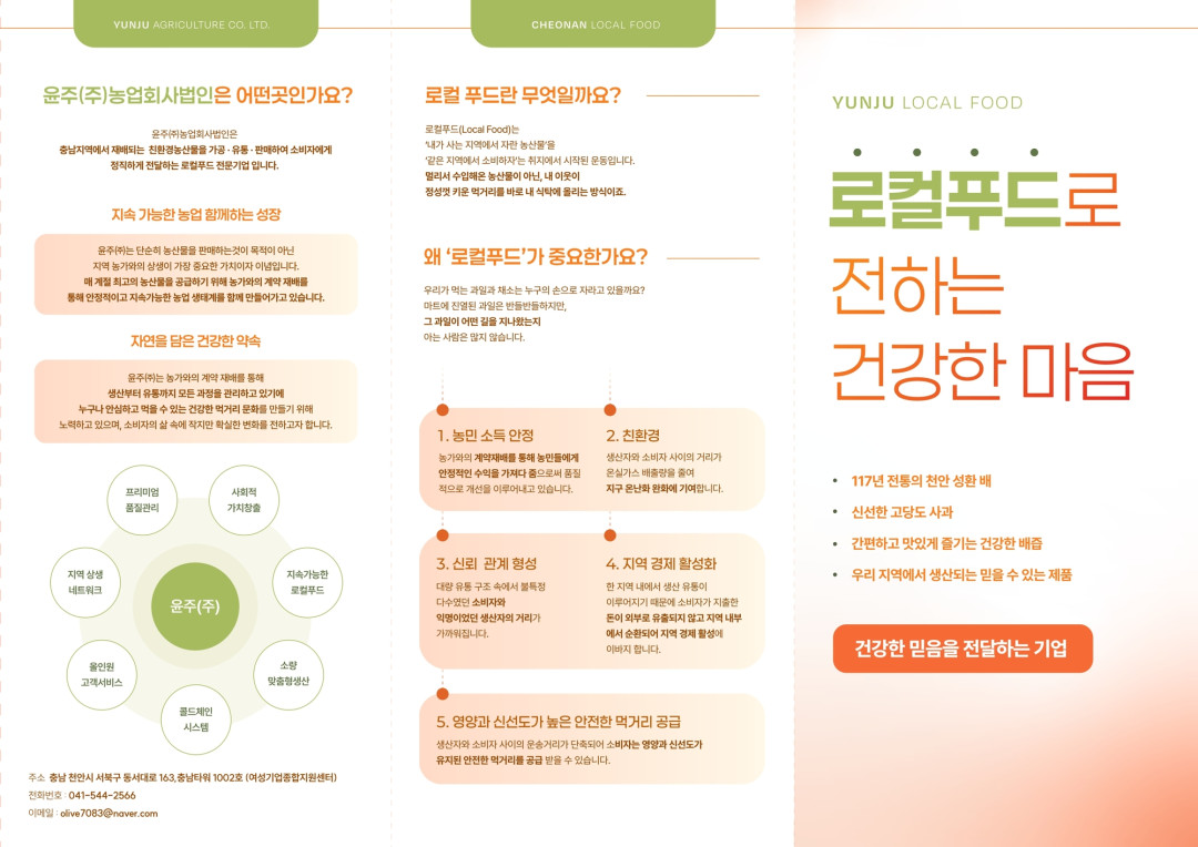 - ✅ 윤주(주)농업회사법인은 생산자의 얼굴이 보이는 투명한 먹거리 문화를 추구하며, 로컬푸드의 가치를 삶 속에서 실천합니다